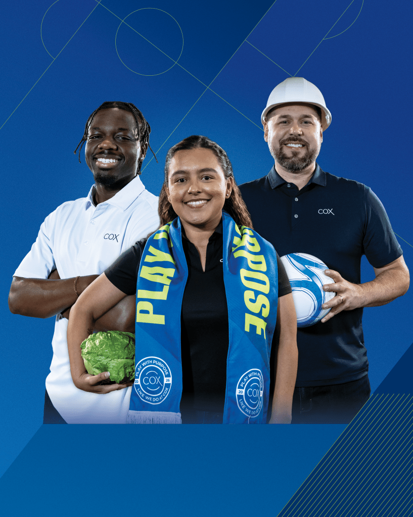 At Cox, we play across many fields, united by a commitment to people and the planet. We bring connections to homes and businesses. We make it easier for people to find their dream car. We tell stories that matter. We grow the freshest and cleanest sustainable produce year-round to feed a growing population. We’re building a circular economy where hard‑to‑recycle plastics can become infinitely recyclable. And we protect and restore the outdoors, preserving the unique relationship between people and nature.